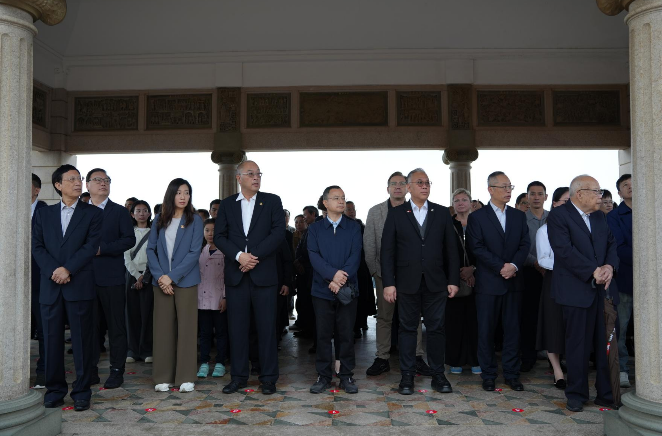 全体人员肃立默哀,向陈嘉庚先生墓行三鞠躬礼,敬献鲜花,并绕行墓一周,表达崇敬之心、缅怀哀思之情。