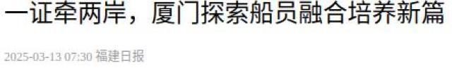 【福建日报】一证牵两岸,厦门探索船员融合培养新篇