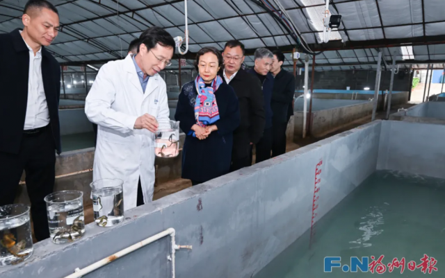 走进蓝粮渔业有限公司,郭宁宁详细了解海马繁育养殖、市场需求、销售渠道、溯源体系建设等情况,勉励企业坚定信心,加强与高校、科研单位合作,大力发展精深加工,推动药品保健品研发上市,努力延伸产业链、提高附加值,打响特色品牌;要发挥龙头企业优势,依托专业合作社,加强联农带农,不断扩大养殖规模,带动当地农民实现“家门口”就业增收。