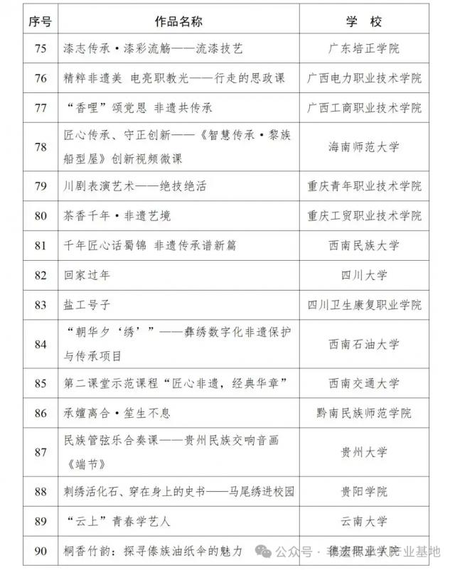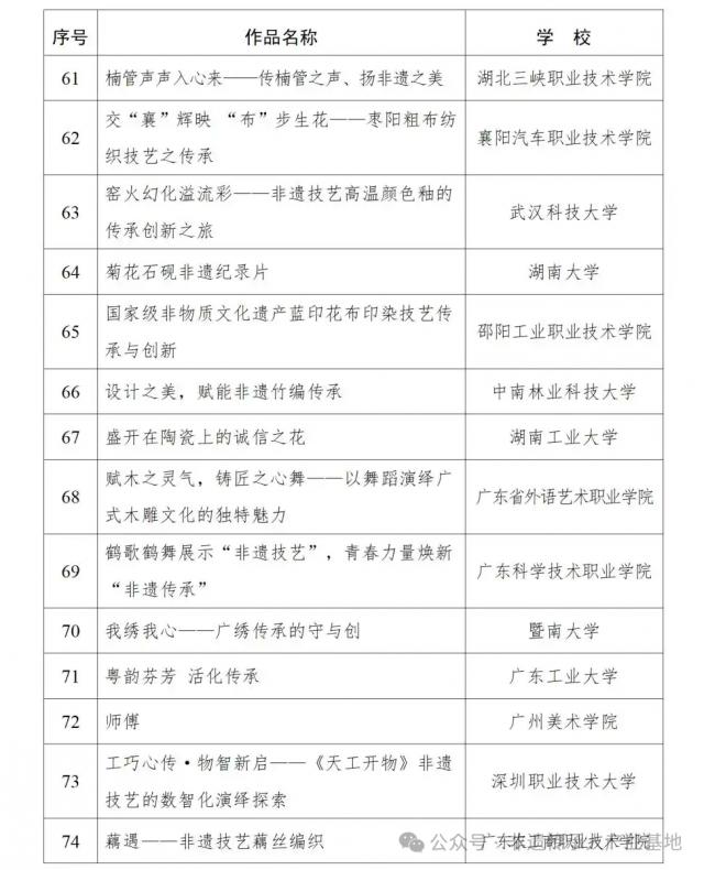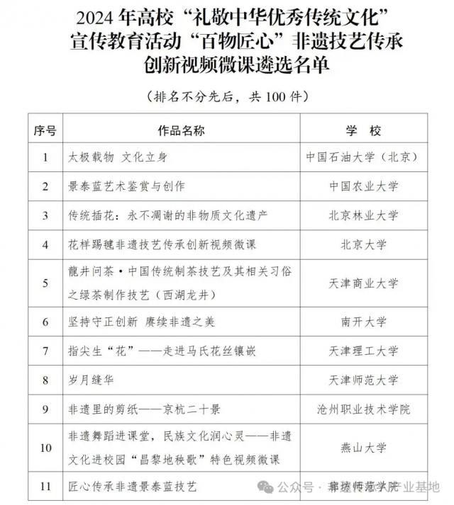 3. 2024年高校“礼敬中华优秀传统文化”宣传教育活动“百物匠心”非遗技艺传承创新视频微课遴选名单