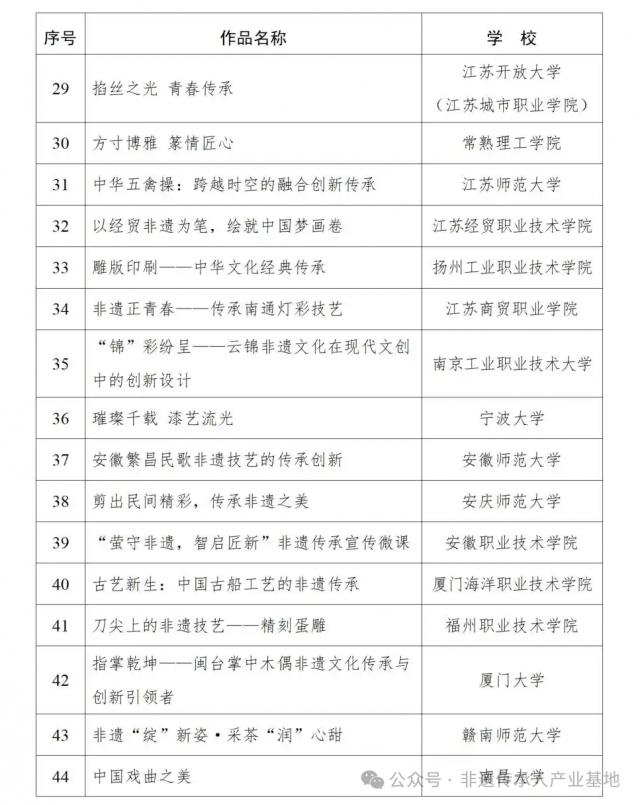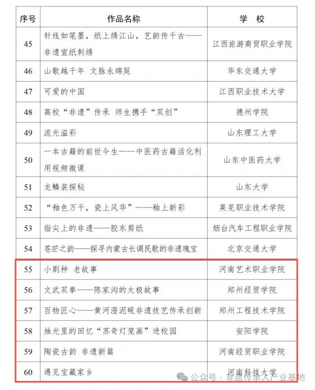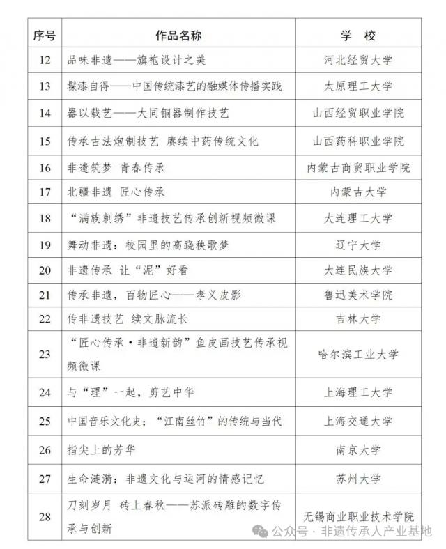 宣传教育活动“百物匠心”非遗技艺传承创新视频微课遴选名单