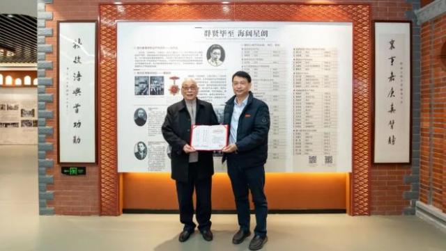 厦门海洋学院党委书记陈一端陪同叶曼林一行参观校史馆,共同回顾了学校在抗战时期的播迁历程和叶维奏校长的生平事迹。在纪念活动上,叶曼林向厦门海洋学院赠送了亲笔书写、厦门市楹联学会前会长陈力杰编撰的楹联书法作品“襄助嘉庚真臂膀,接收浯屿首功勋”。厦门市集美校友总会永久名誉会长任镜波、中共翔安区委台办主任林少明与叶曼林、陈一端共同为作品揭幕。
