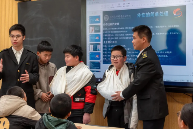 图9:实践队成员为海岛中心小学学生教授海上急救知识