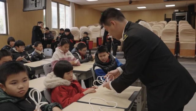 图8:实践队成员为海岛中心小学学生讲授海上绳结技艺
