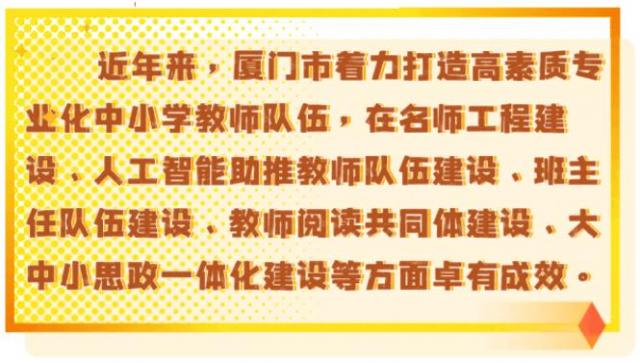 实施名师名校长培养工程,成立11个“名校(园)长工作室”、47个“名师工作室”,柔性引进教育专家58名,组建“同安教育顾问专家团队”,一对一开展指导工作。