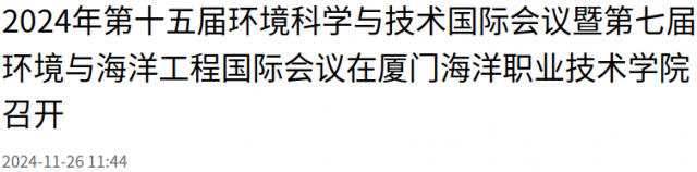 11月21至23日,2024年第十五届环境科学与技术国际会议暨第七届环境与海洋工程国际会议在厦门海洋职业技术学院顺利召开。