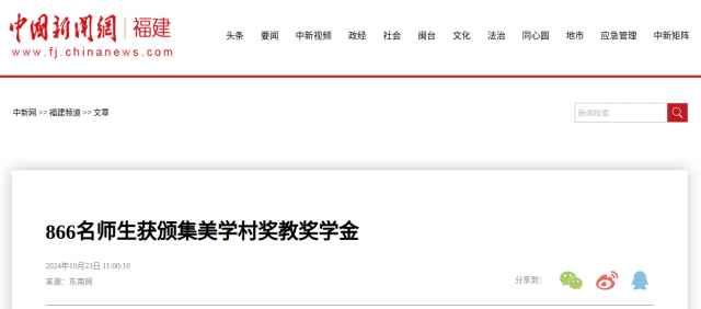 10月22日上午,第35届集美学村奖教奖学颁奖大会在厦门集美福南堂举办,来自集美学村各校的866名师生获颁集美学村奖教奖学金。