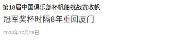 本报讯(文/图 记者 路鹏宇)中国大帆船比赛最知名的冠军奖杯,时隔8年重回厦门。日前在厦门五缘湾游艇港结束的第18届中国俱乐部杯帆船挑战赛,厦门海洋职业技术学院队在亚洲冠军陈和池船长的带领下,以2比0比分力压上届冠军北京航海中心队,获得冠军。