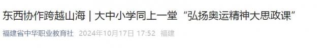 【福建省中华职业教育社】东西协作跨越山海 | 大中小学同上一堂“弘扬奥运精神大思政课”