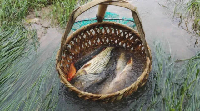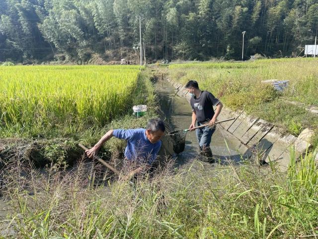 在止马镇仁厚村稻渔综合种养数字农业科技示范基地,村民们趁着晴好天气,忙着捕捞稻鱼。(图源:光泽关注)