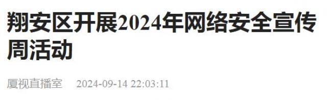 9月9日-15日是2024年国家网络安全宣传周。9日上午,一场以“网络安全为人民,网络安全靠人民”为主题的翔安区2024年网络安全宣传周启动仪式在厦门海洋职业技术学院翔安校区举行。