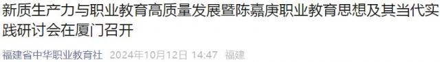 10月11日上午,“新质生产力与职业教育高质量发展暨陈嘉庚职业教育思想及其当代实践研讨会”在厦门隆重召开。