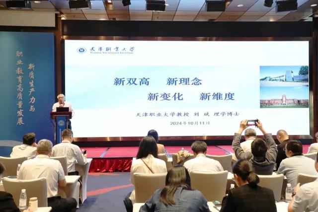 刘斌作题为《新双高、新理念、新变化、新维度》的主旨报告,强调依托“新双高”理念,以多维度提升高职教育发展质量。