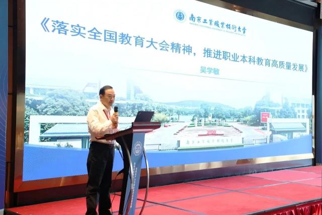 吴学敏作题为《落实全国教育大会精神,推进职业本科教育高质量发展》的主旨报告,提出“五有三性”人才培养理念,推动职业本科教育高质量发展。