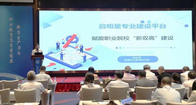 钱会博作题为《启明星专业建设平台助力职业院校“新双高”内涵建设》的主旨报告,聚焦于“五金”建设,介绍了启明星专业建设平台如何通过数字化升级专业建设与管理。