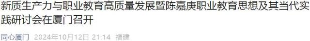 10月11日,“新质生产力与职业教育高质量发展暨陈嘉庚职业教育思想及其当代实践研讨会”在厦门隆重召开。