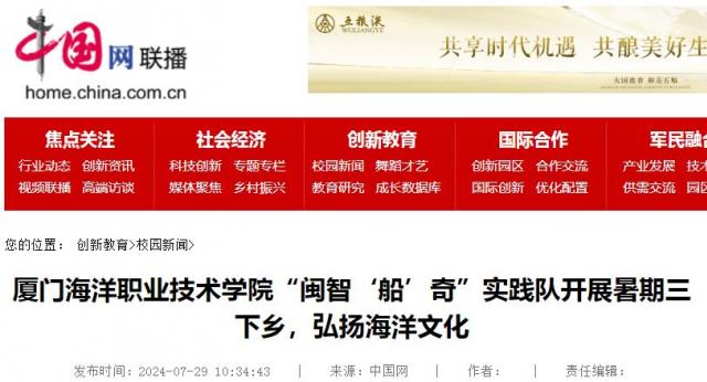 2024年7月8日至7月16日,厦门海洋职业技术学院“闽智‘船’奇”实践队赴泉州开展暑期“三下乡”社会实践活动。