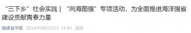 为深入学习贯彻习近平总书记关于海洋强国建设的重要论述,引导大学生关心海洋、认识海洋、经略海洋,积极投身海洋事业,树立海洋观念,充分认识海洋的政治利益、经济利益、安全利益和文化利益,由团省委、省学联联合主办,厦门大学团委牵头的2024年福建省大学生暑期文化科技卫生“三下乡”社会实践——“向海图强”专项活动正火热进行。