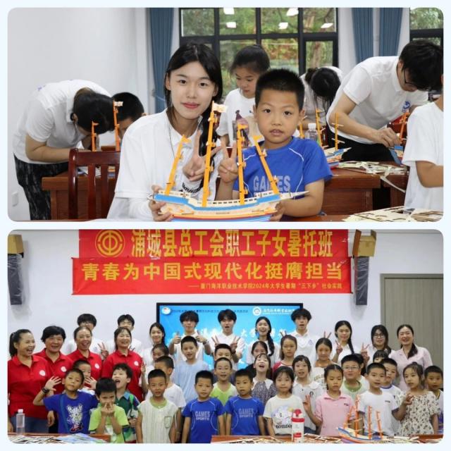 厦门海洋职业技术学院“海漾希望”实践队联合南平市浦城县总工会等单位开展实践。聚焦海洋知识传播,通过动手制作船模、VR驾船体验、海洋知识竞赛互动、蒲扇书法教学等活动,带领当地30名社区儿童关心海洋、认识海洋,了解海洋科学家精神,感受海洋文化的独特魅力。