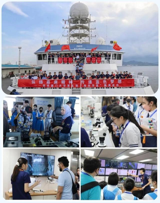 厦门大学实践队依托“嘉庚”号科考船开展海丝学堂,打造国际化海洋实训平台,开展沉浸式、研究型的海上实践与专业学习,加强学生科研思维训练,提升科技实践能力,逐步建成跨洋越海、辐射东南亚的厦门大学“海丝学堂”品牌。