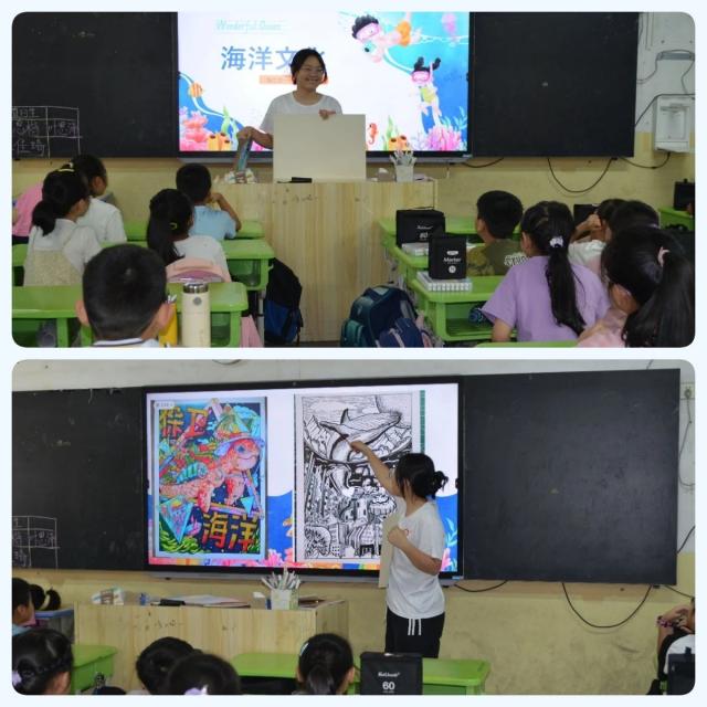 福建幼儿师范高等专科学校“艺海拾贝”实践队引导福安当地儿童深入探索福安渔村,通过开展绘画、版画、水彩等艺术教学活动,让他们体验这片海域独有的自然景观和丰富的人文风情。