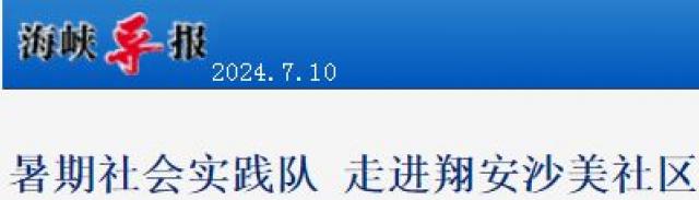 导报讯 (记者 曾艺轩 通讯员 王奕强 王萍 李茜)日前,厦门海洋职业技术学院海洋文化与旅游学院“红色领航沙美行”暑期“三下乡”社会实践队在翔安区香山街道沙美社区开展以“访聚红色沙美,擘画振兴蓝图”为主题的实践活动。
