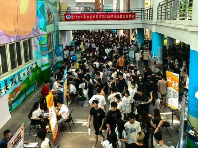近日,厦门软件职业技术学院举办了2024届毕业生校园招聘会。此次招聘会现场共有86家用人单位参加,提供优质就业岗位2100个,涉及计算机信息技术、艺术设计、建筑工程、制造业、电子商务、酒店管理等多个行业,为莘莘学子提供展其才、显其智的广阔舞台。据不完全统计,至少有5000名学生参加本次招聘会。