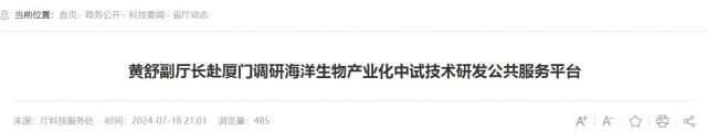 7月16日,厅党组成员、副厅长黄舒同志带队,赴厦门调研由自然资源部第三海洋研究所团队建设的海洋生物产业化中试技术研发公共服务平台。