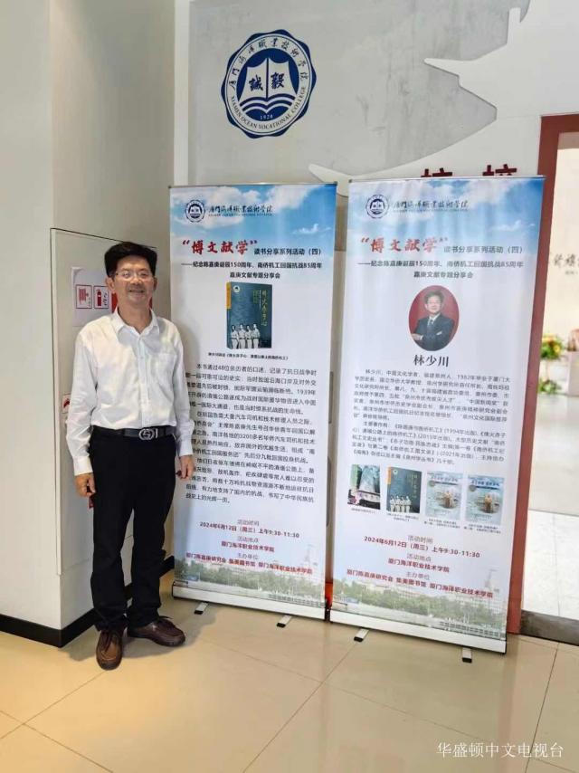 活动现场,中国文化学者,华侨大学教授,泉州市华侨历史学会副会长,泉州市嘉庚精神研究会副会长,南洋华侨机工回国抗日纪念馆名誉馆长林少川分享了他著作《烽火赤子心:滇缅公路上的南侨机工》的初衷、四十年来宣传南侨机工事迹的心路历程,深刻阐述了陈嘉庚先生引领南洋华侨为支持祖国抗战所做的贡献,并与读者们交流互动,探讨宣传南侨机工事迹的历史和现实意义,以及在当代如何更好地传承弘扬嘉庚精神,团结海内外华人华侨赓续报国之志。
