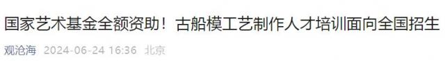 据国家艺术基金网站和厦门海洋职业技术学院消息,厦门海洋职业技术学院承担的《国家艺术基金(一般项目)2024年度资助项目》中的“艺术人才培训项目”《以“船”述史:中国古船模工艺制作人才培训》项目于6月13日开始面向全国招生了。