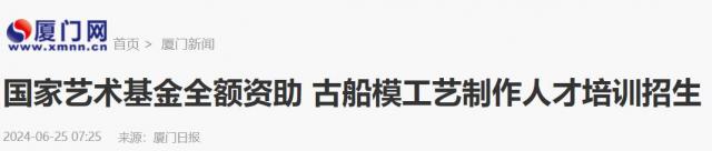 厦门网讯(厦门日报记者 邵凌丰 通讯员 程霞)由厦门海洋职业技术学院承担的“国家艺术基金(一般项目)2024年度资助项目”中的“以‘船’述史:中国古船模工艺制作人才培训”项目正面向全国招生,报名截至7月2日24时。