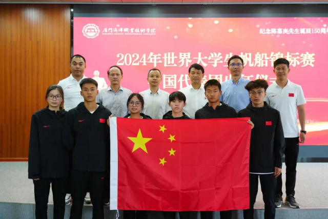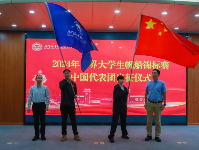 出征仪式上, 厦门海洋职业技术学院党委书记陈一端介绍了两校从建校以来的历史渊源和深厚情谊,强调出国境涉外安全和外事纪律,鼓励代表团赛出风格,赛出水平,为校争光,为国争光。