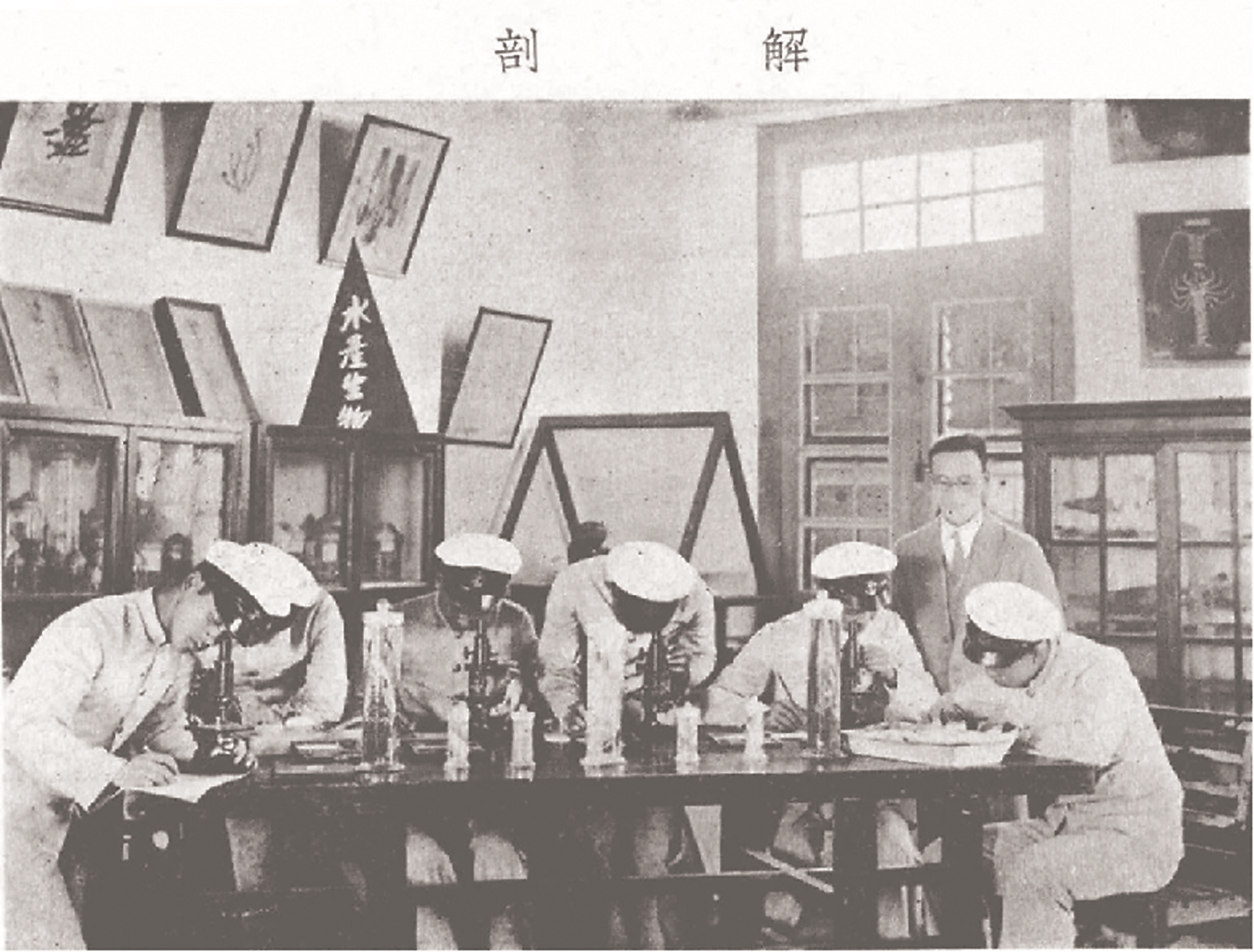 当年的集美学校水产科学生在进行水产解剖实验。(资料图片)