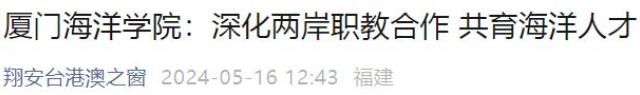 “厦门海洋职业技术学院通过与台湾院校的合作,为两岸职业教育的融合发展提供了新的思路和模式。”厦门市翔安区台港澳办相关负责人表示,这些举措不仅有助于培养更多适应海洋经济发展的专业人才,也为两岸关系的和平发展做出了积极贡献。