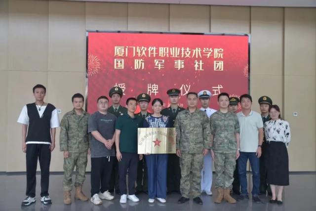 近日,厦门软件职业技术学院国防军事社团授牌仪式举行。学校国防军事社团成立于2021年,成员以退役学生为主,面向全体学生,旨在凝聚榜样力量,发扬部队优良传统,发挥退役复学士兵在校园文化建设特别是国防教育方面的优势和作用,更好地服务学生。社团成立以来,在国防教育、大学生征兵、军训、运动会等活动中发挥了积极作用。