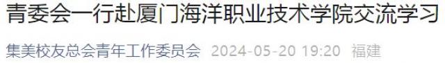 5月17日上午,集美校友总会秘书长连凤宝、集美校友总会青年工作委员会(简称青委会)主任刘达兵、轮值主任柴进、办公室主任兼副主任王海源、副主任陈帆、王惠卿、青委会秘书处一行人赴厦门海洋职业技术学院交流学习并召开青委会第四次主任办公会。