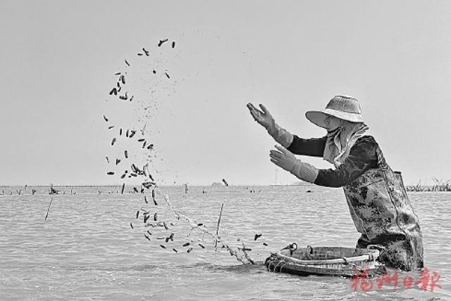 “种蛏和种水稻是一样的,讲究时令性。”有20多年种蛏经验的养殖户林兆明告诉记者,每年农历新年至农历二月初是撒蛏苗的最佳时节,在小潮时撒种的蛏苗将在2个小时内钻进泥里安家。等到农历六月,缢蛏进入采收期,一直持续至白露时节,预计每亩利润达2万元。