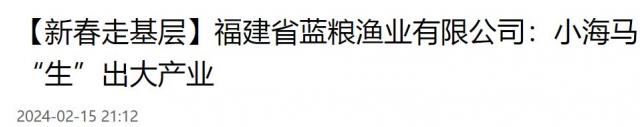 据了解,海马是名贵的药用海水鱼类,市场前景好,可海马对水质、水温、光线、饵料等环境因子敏感度高,养殖并不容易。蓝粮公司在专家团队研究了多个适合养殖海马的城市和海域后,认为罗源湾是膨腹海马理想的繁育地,在这里养殖的膨腹海马苗养殖成活率高达80%。