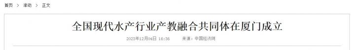 2022年末,中共中央办公厅、国务院办公厅印发《关于深化现代职业教育体系建设改革的意见》,提出优先选择一批重点行业和重点领域,支持龙头企业和高水平高等学校、职业学校牵头,组建学校、科研机构、上下游企业等共同参与的跨区域产教融合共同体。全国现代水产行业产教融合共同体的成立,是跨区域、多主体整合水产行业全链要素资源的创新举措,是推动职普融通、产教融合、科教融汇,促进教育、科技、人才“三位一体”的创新举措。