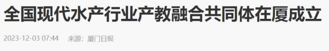 厦门网讯(通讯员 李慧 胡啸尘 厦门日报记者 佘峥)全国现代水产行业产教融合共同体(简称“共同体”)日前在厦门成立,它是由龙头企业和高校、职业学校牵头组建的学校、科研机构、上下游企业等共同参与的跨区域产教融合共同体,既有沿海地区,也有内陆地区的院校和企业。