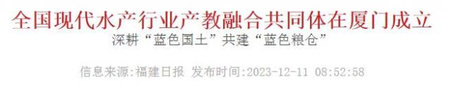 共同体的成立,是贯彻落实国家海洋强国战略的有益实践,是跨区域、多主体整合水产行业全链要素资源的创新举措,是推动职普融通、产教融合、科教融汇,促进教育、科技、人才“三位一体”的创新举措,相关人士表示。