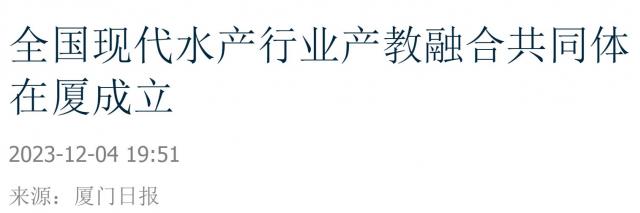 【厦门日报】全国现代水产行业产教融合共同体在厦成立