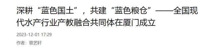 福建省长达3752公里的陆地海岸线、13.6万平方公里的海域面积,彰显着得天独厚的海洋优势。习近平总书记在福建工作期间始终高度重视海洋发展,在宁德要求“耕海牧渔”,念好“山海经”;在福州指出要“像重视耕地一样重视海域,像抓粮食生产一样抓海洋开发,把加快经济发展的触角从陆地向海洋延伸”。进入新时代,福建始终牢记总书记嘱托,科学建设“福海粮仓”,为粮食安全奠定坚实基础。2022年,福建省水产品总产量达到861.4万吨,高居全国第一,远超全国平均水平;水产品出口贸易额达到85亿美元,约占全国水产品出口额的36%,连续十年位居全国第一;渔业经济总产值3625亿元,同样位居全国前列。“福建是全国水产大省,在福建成立全国现代水产行业产教融合共同体,符合全国水产行业的结构布局,契合本地产业结构和经济社会发展需求,对福建加快建设海洋强省建设、引领推动全国水产行业健康长远发展具有积极意义。”全国水产技术推广总站站长助理黄太寿说。而行业产教融合共同体是职业教育改革发展中备受关注的一项创新举措。“近年来,福建省委省政府深入推进福建特色现代职业教育体系建设,多措并举深化产教融合、校企合作。厦门是教育部、福建省共建的全国职业教育创新发展高地,此次牵头成立全国现代水产行业产教融合共同体,是省市建立‘产教布局高度匹配、服务高效对接、支撑全行业发展’产教融合新型组织形态的一次重要尝试。”福建省政协教科卫体委员会副主任刘健说。