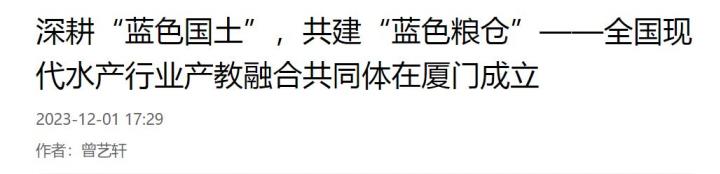 【新福建】深耕“蓝色国土”,共建“蓝色粮仓”——全国现代水产行业产教融合共同体在厦门成立