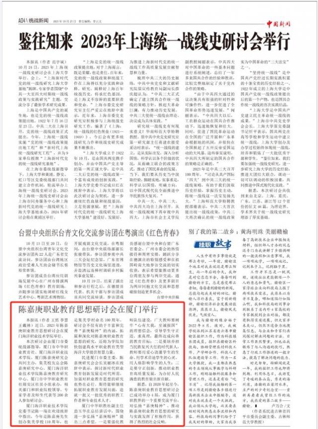 ​    ​本报讯(作者 王然 李慧 王戴林)近日,2023年陈嘉庚职业教育思想研讨会在厦门海洋职业技术学院举行。