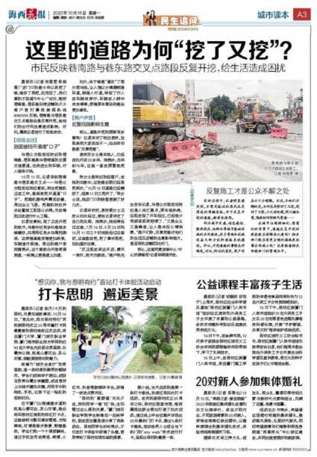 据介绍,当天启动的是第一条打卡路线,后续还有四次打卡活动。在庆祝新思明成立20周年之际,思明区委宣传部、海西晨报社联合策划打造了此次活动,通过线上平台征集并评选出20处最热门打卡点,推出5条打卡路线,组织各界人士结合当下热门的“city walk”形式进行打卡,呈现出思明的最美一面。