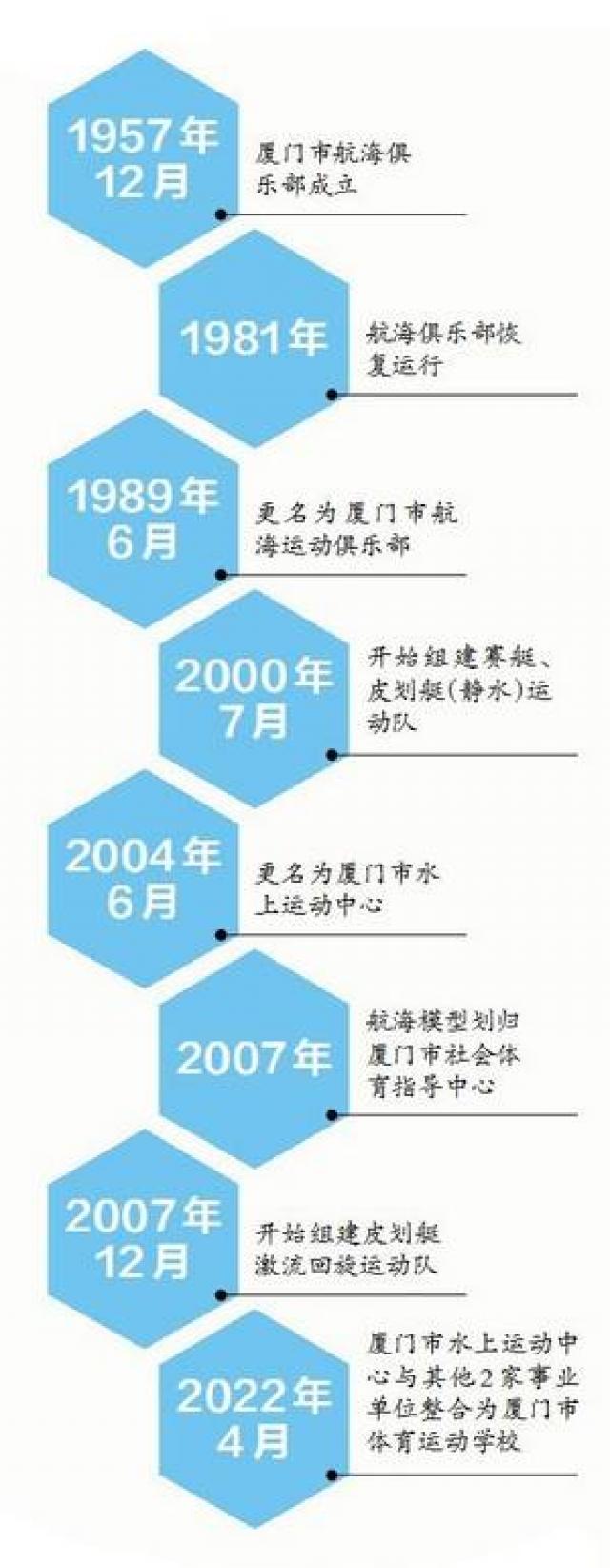 去年4月,厦门市水上运动中心与厦门市体育运动学校和厦门市竞技体育发展中心共3家事业单位,整合为厦门市体育运动学校。厦门市水上运动中心作为独立的事业法人单位结束了其历史使命。