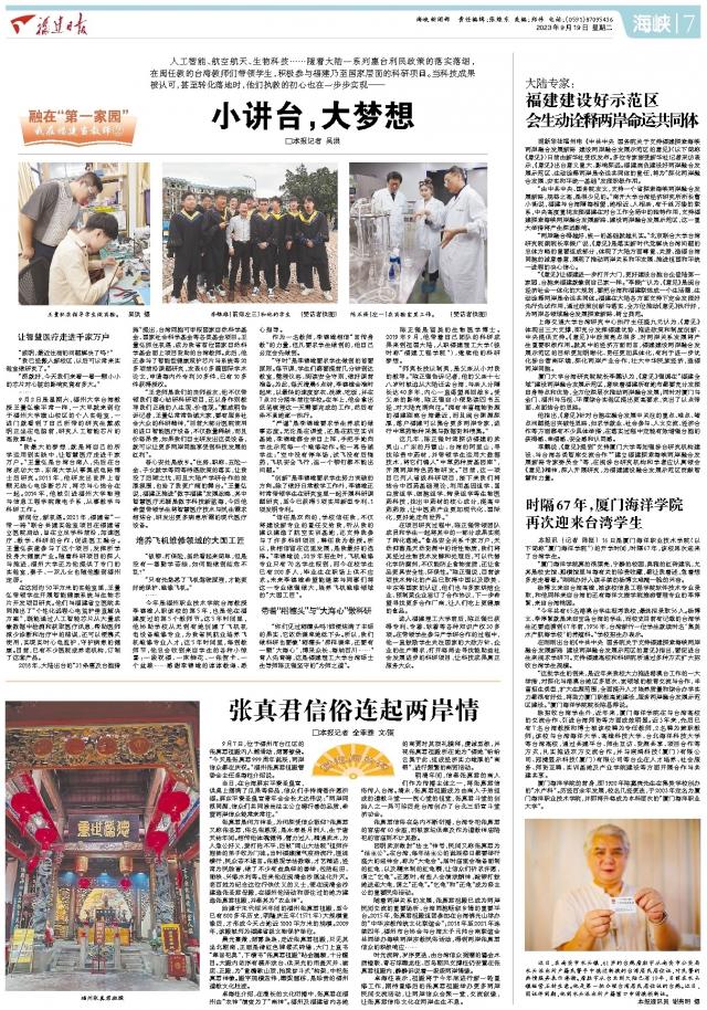 本报讯 (记者 陈挺) 16日是厦门海洋职业技术学院(以下简称“厦门海洋学院”)的开学时间,时隔67年,该校再次迎来了台湾学生。