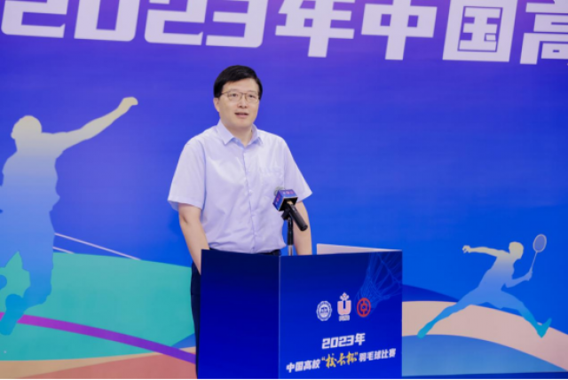 中国大学生体育协会羽毛球分会主席、吉林大学党委常务副书记冯正玉宣布大赛开幕