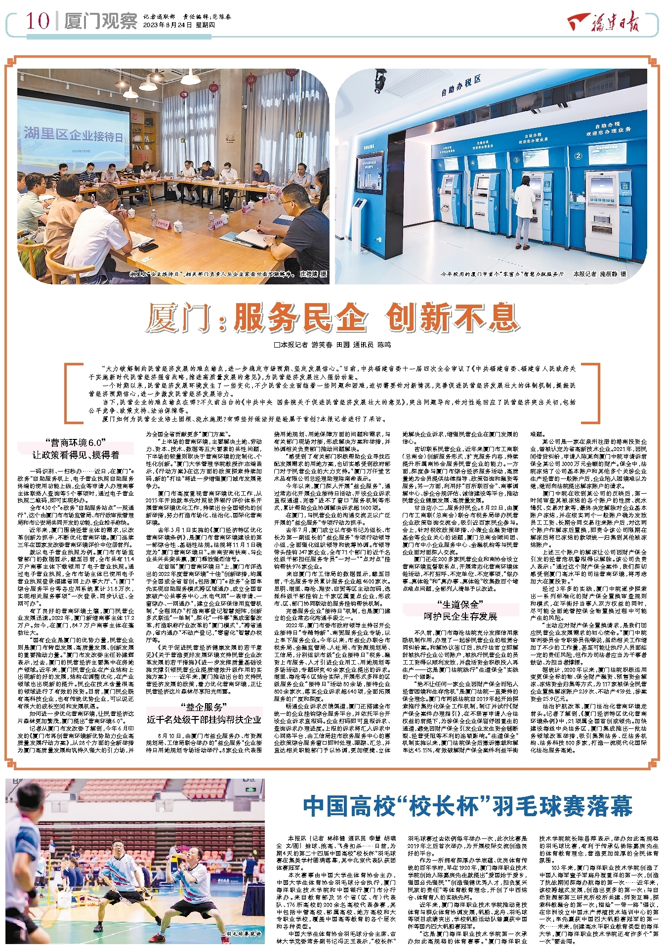 “这是厦门海洋职业技术学院第一次承办如此高规格的体育赛事。”厦门海洋职业技术学院院长陈昌萍表示,举办如此高规格的羽毛球比赛,有利于传承弘扬陈嘉庚先生的体育教育理念,营造更加浓厚的全民体育氛围。